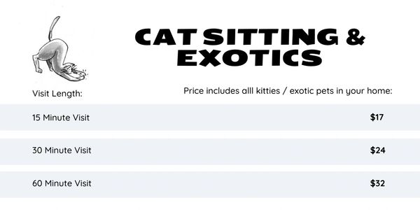 We are keeping busy this summer and currently taking on dog walking clients, cat care and exotic visits. Our overnight slots fill up quickly, so we are putting a 'paws' on accepting new overnight-only clients (while we fulfill our current client needs).